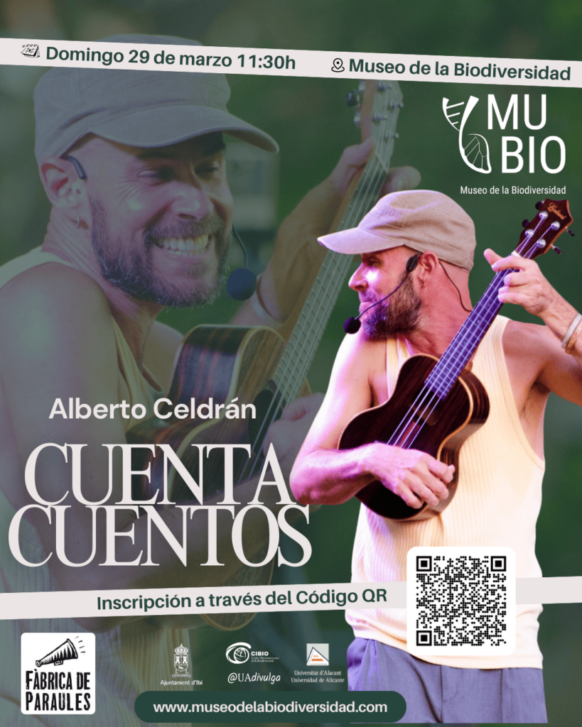 El pròxim diumenge 29 de març a les 11:30 h gaudirem al Museu de la Biodiversitat d’Ibi d’una sessió molt especial de conta contes musical amb Alberto Celdrán, de Fàbrica de Paraules.